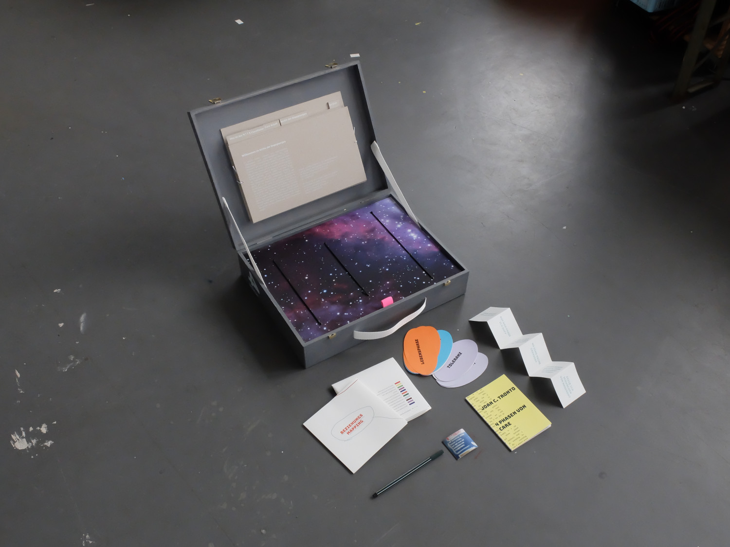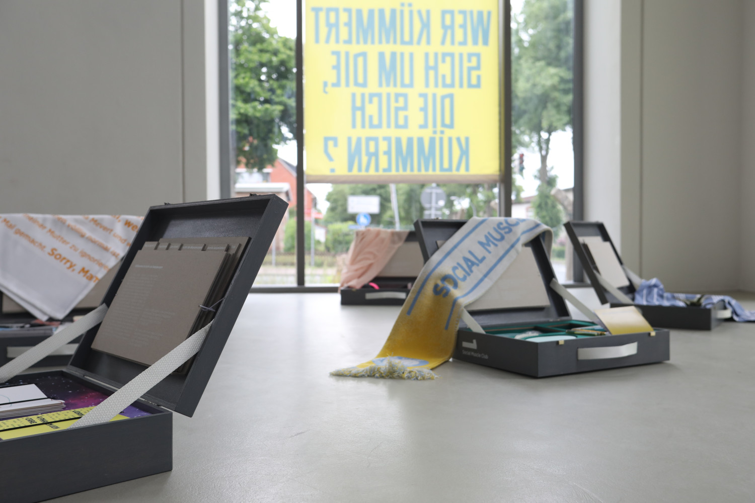 Das kuratorische Programm von Sascia Bailer im M.1 Hohenlockstedt zum Thema "Wer kümmert sich um die, die sich kümmern?" bestand aus Formaten, die die Begegnungen von Menschen in den Fokus stellten: Der Social Muscle Club als Training der sozialen Muskeln, Erzählcafés und Workshops zu Themen wie Vertrauen, Mutterschaft, Isolation und Zeit. Über ein Jahr lang haben wir die Veranstaltungen des Programms von Sascia Bailer begleitet und acht Interpretationen in Form von Koffern entwickelt.